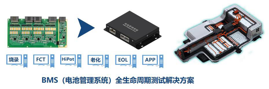 BMS 带载老化测试系统由老化车、老化柜、带载老化设备构成,老化车依据项目定制,可为移动小车,老化车为多层多工位设计,可对接多款DUT,老化车装载后推置老化柜中,老化柜采用独立设计,带滚轮、可移动,可兼容各类BMU、BMC及其他产品老化用途,对接带载老化设备,带载老化设备内置模拟电芯、供电电源等,通过自研老化测试平台扫描条码,进行BMS产品统一管理、分别采集与监控与带载老化,数据上传MES系统,进行数据追溯。