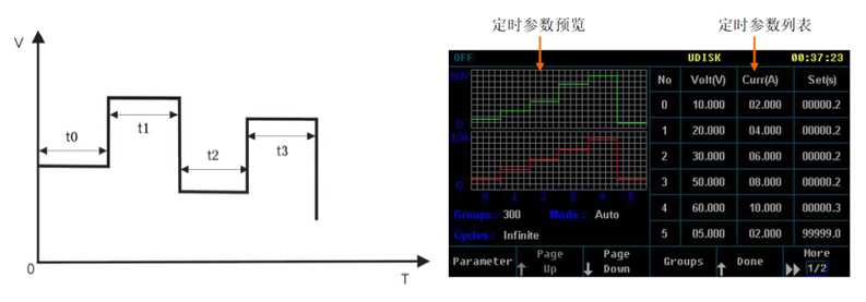 可存储/调用300组电压电流等数据,配合定时执行可达到简易的自动测试目的。
