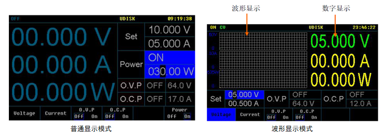 具有恒压和恒流两种输出状态,根据负载情况自动切换 | 可存储/调用300组电压电流等数据,配合定时执行可达到简易的自动测试目的 |